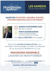 Ce matin, nous serons sur le terrain avec mon équipe pour la réunion de quartier Aigueillères – Font du Noyer – Versailles – Platanes – Cardonilles.